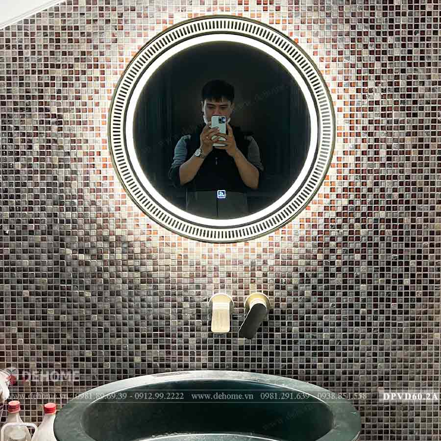 Kiểu dáng | Gương hình tròn, khung mạ PVD màu vàng, led hỗn hợp |