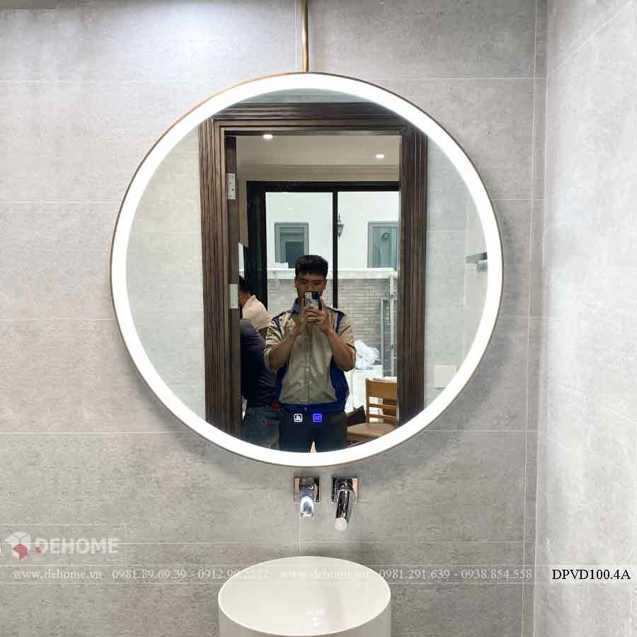 - Gương tròn có đèn LED khung mạ PVD màu vàng hồng, Sấy/phá sương