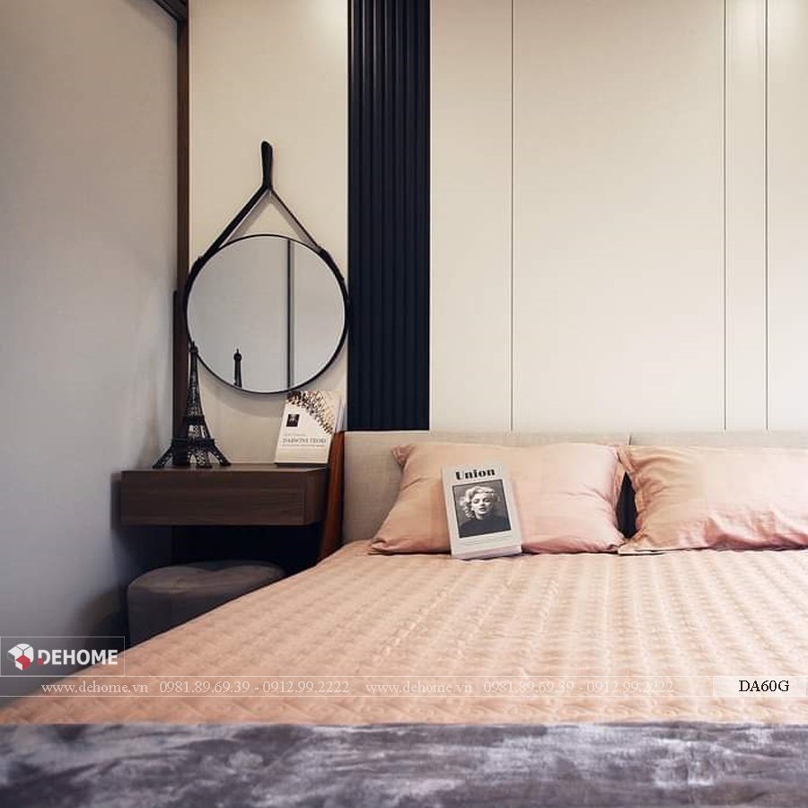 Gương dây da bàn trang điểm hình tròn cao cấp Dehome - DA60G