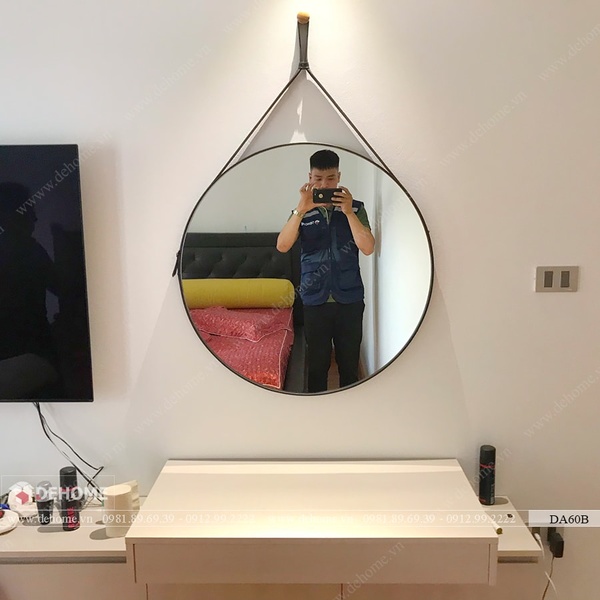 Gương tròn dây da là sản phẩm được khách hàng yêu thích và sử dụng nhiều trong thiết kế nội thất năm nay. Chiếc gương tròn không chỉ tạo cảm giác về một căn phòng rộng rãi, sáng sủa mà còn góp phần tạo điểm nhấn cho bức tường đơn điệu trở nên ấn tượng, nổi bật hơn.