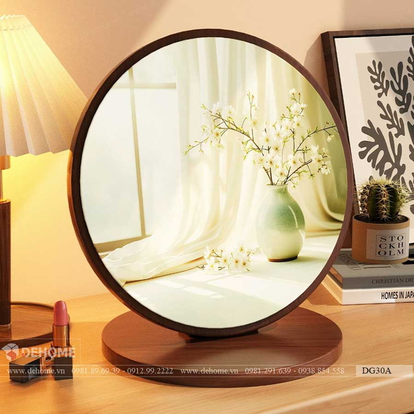 Gương Khung Gỗ Tự Nhiên Để Bàn Trang Điểm Cao Cấp Dehome - DG30A