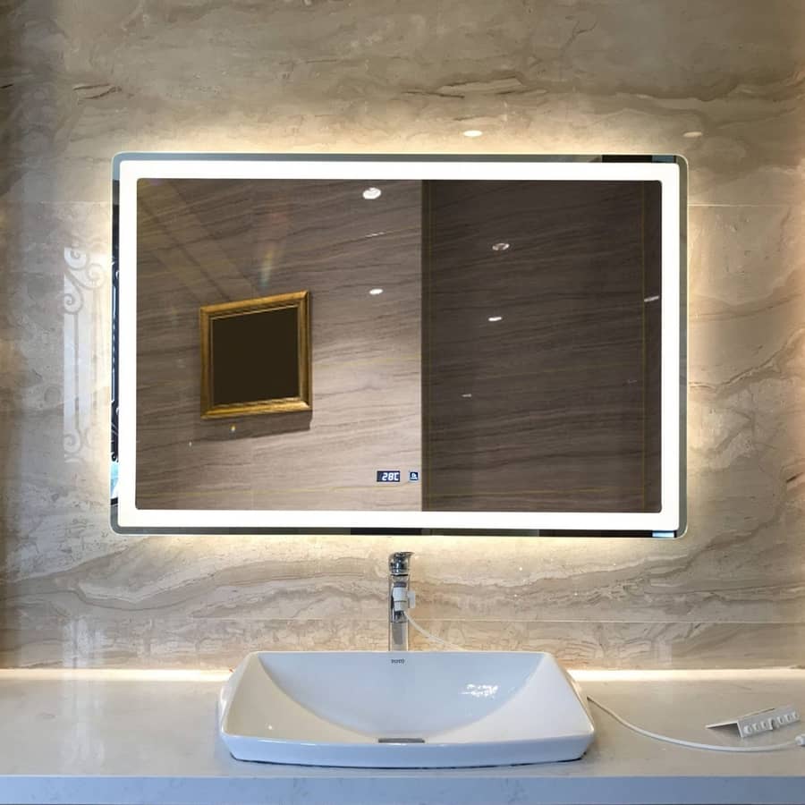 Gương đèn led tích hợp đồng hồ nhiệt độ giúp theo dõi được thời gian 1 cách chính xác nhất, đồng thời đo nhiệt độ trong nhà là tính năng giúp bạn có được những bộ trang phục phù hợp khi ra ngoài không bị ảnh hưởng đến sức khỏe.