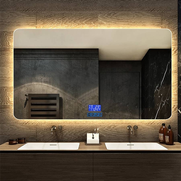 Gương đèn led tích hợp đồng hồ nhiệt độ giúp theo dõi được thời gian 1 cách chính xác nhất, đồng thời đo nhiệt độ trong nhà là tính năng giúp bạn có được những bộ trang phục phù hợp khi ra ngoài không bị ảnh hưởng đến sức khỏe.