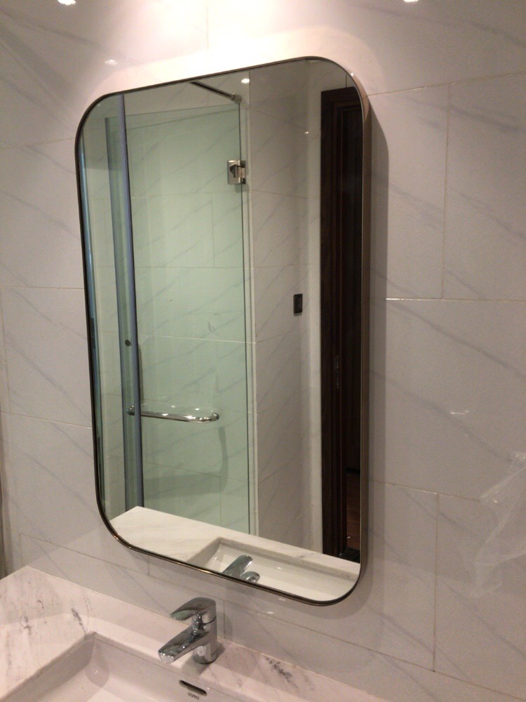 + Loại 1: Gương khung inox mạ PVD màu vàng hồng, kích thước ngang 600mm x 900mm, số lượng: 89 gương